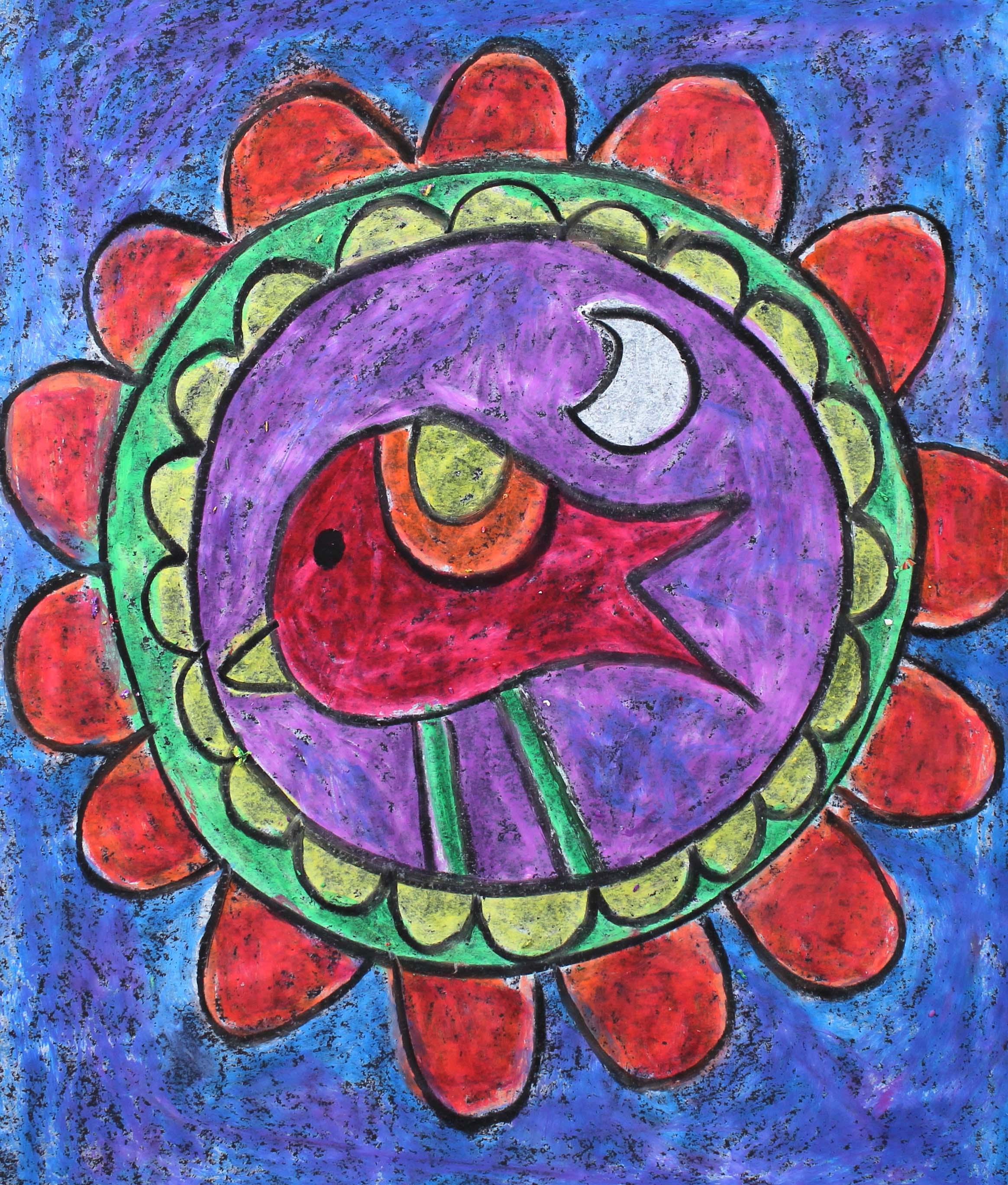 Mexican Folk Art Bird Oil Pastel Drawing And Painting Art Lesson