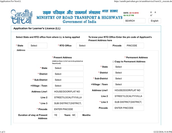 Driving Licence Form Driving Licence Online Application Form